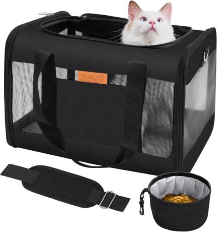 - WATERPROOF & DURABLE: This cat carrier is made of durable and lightweight polyester fabric, which is wear-resistant and waterproof. Soft Mesh windows on the top and side ensure that your pet gets enough fresh air and can see its surroundings, which can help reduce stress during travel.