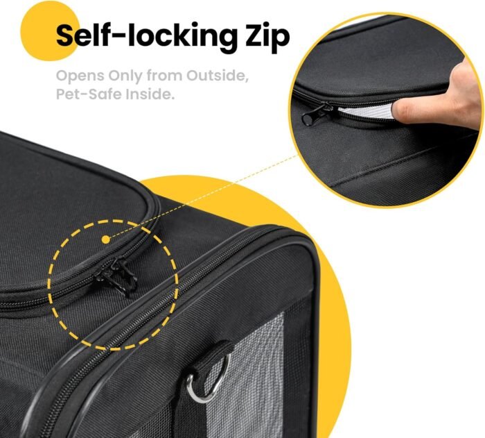 - BREATHABLE & CONVENIENT:The cat carriers with an openable top and three-sided mesh windows provide fresh air and a view, reducing pet anxiety and keeping them comfortable. External pockets allow easy storage of food, leashes, bags, and other pet essentials.