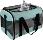 - [PORTABLE AND FOLDABLE] Pet travel carrier comes with a detachable and hand washable wool pet bed, it can provide a comfortable sleeping space for your traveling pet. The cat travel case comes with an adjustable shoulder strap and handle for easy portability. When not in use, you can fold it up for storage.