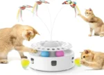 • [3 in 1, Most Versatile Cat Toy Ever] – shooting feather from random holes, flying butterfly and balls in the track. The fluffy feather keeps hiding and popping out from random holes, unpredictable movement stimulates cats to swat and play. Lifelike butterfly that flaps around in the air like real easily prompts cats to pounce and bat. The balls which you can put in the track add extra fun when cats stick their claws into the track and bat the balls